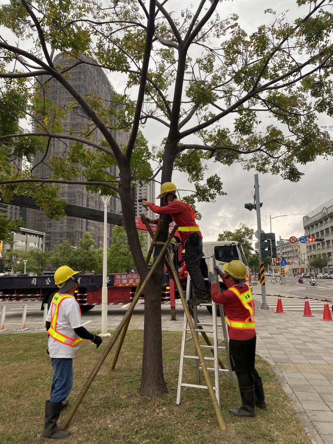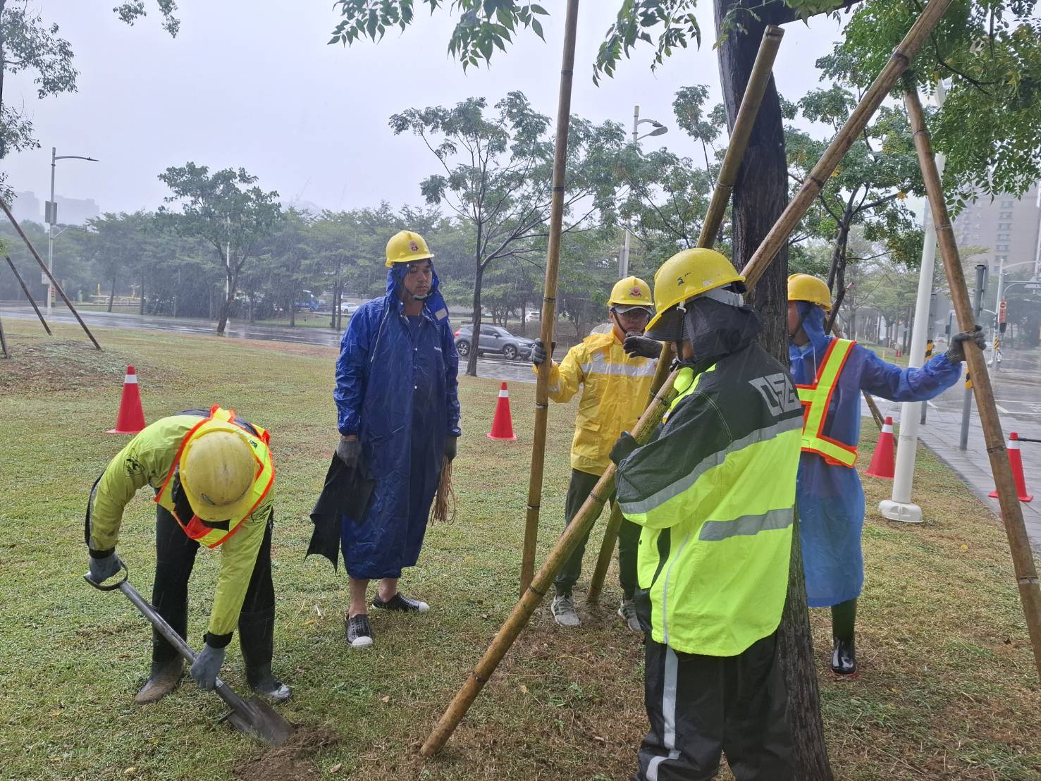 工務局局長楊欽富表示,工務團隊已動員人力,加強行道樹的疏枝修剪及支架固定工作,以抵抗風壓避免傾倒,同時加強所管轄的公園、行道樹疏枝修剪、支架固定,及路燈、開關箱檢修等,颱風來臨期間將持續進行巡查及喬木加固等作業,並整備自有救災機具人力,若颱風帶來災情,將迅速投入災後復原行動,確保市民安全,維持交通順暢。