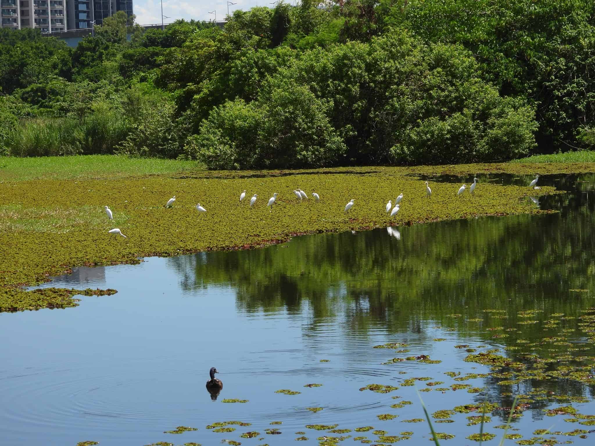 公園處指出,白鷺鷥是臺灣常見水鳥,主要棲息於河口、濕地及水域環境。洲仔濕地內白鷺鷥數量穩定,時而靜立覓食、時而成群飛翔,已成為園區景觀的一大特色。白鷺鷥的穩定聚集,象徵園區水質良好、底棲生物豐富,顯示濕地食物鏈與生態系維持健康平衡。